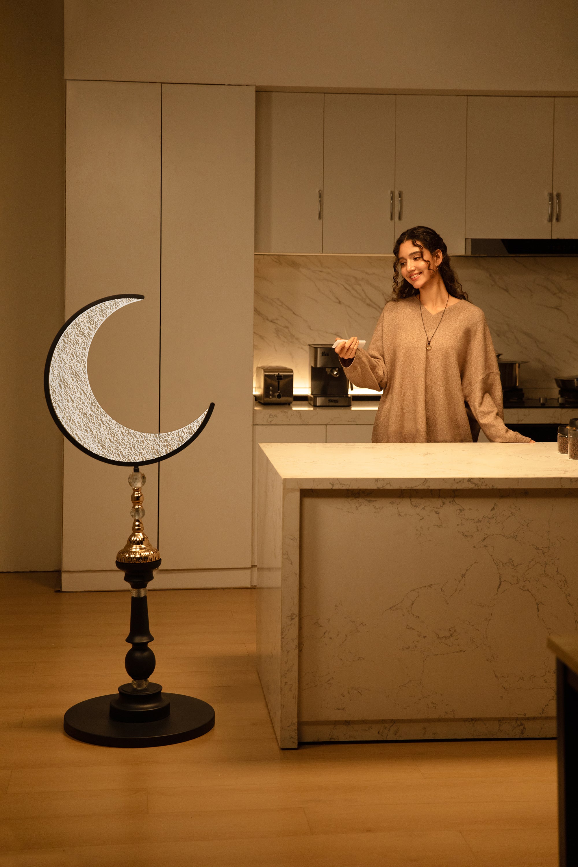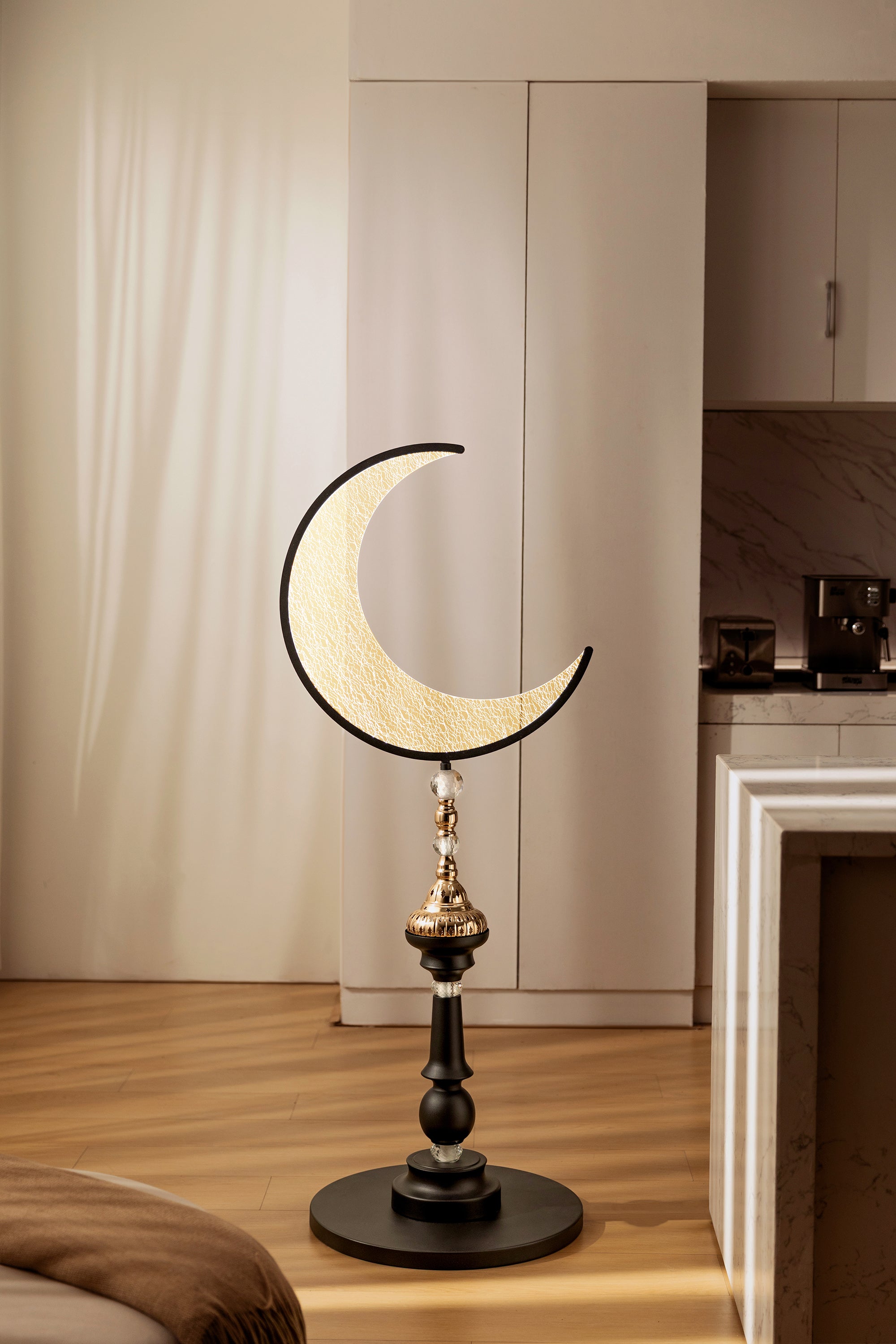 Regular price$189.00The Hilal Éclipse Floor Lamp combines a sculptural crescent form with refined black and gold accents, creating a calm yet striking presence for both modern interiors and festive settings. With adjustable brightness and three color temperature modes, it offers flexible illumination that adapts effortlessly to different moods and occasions.