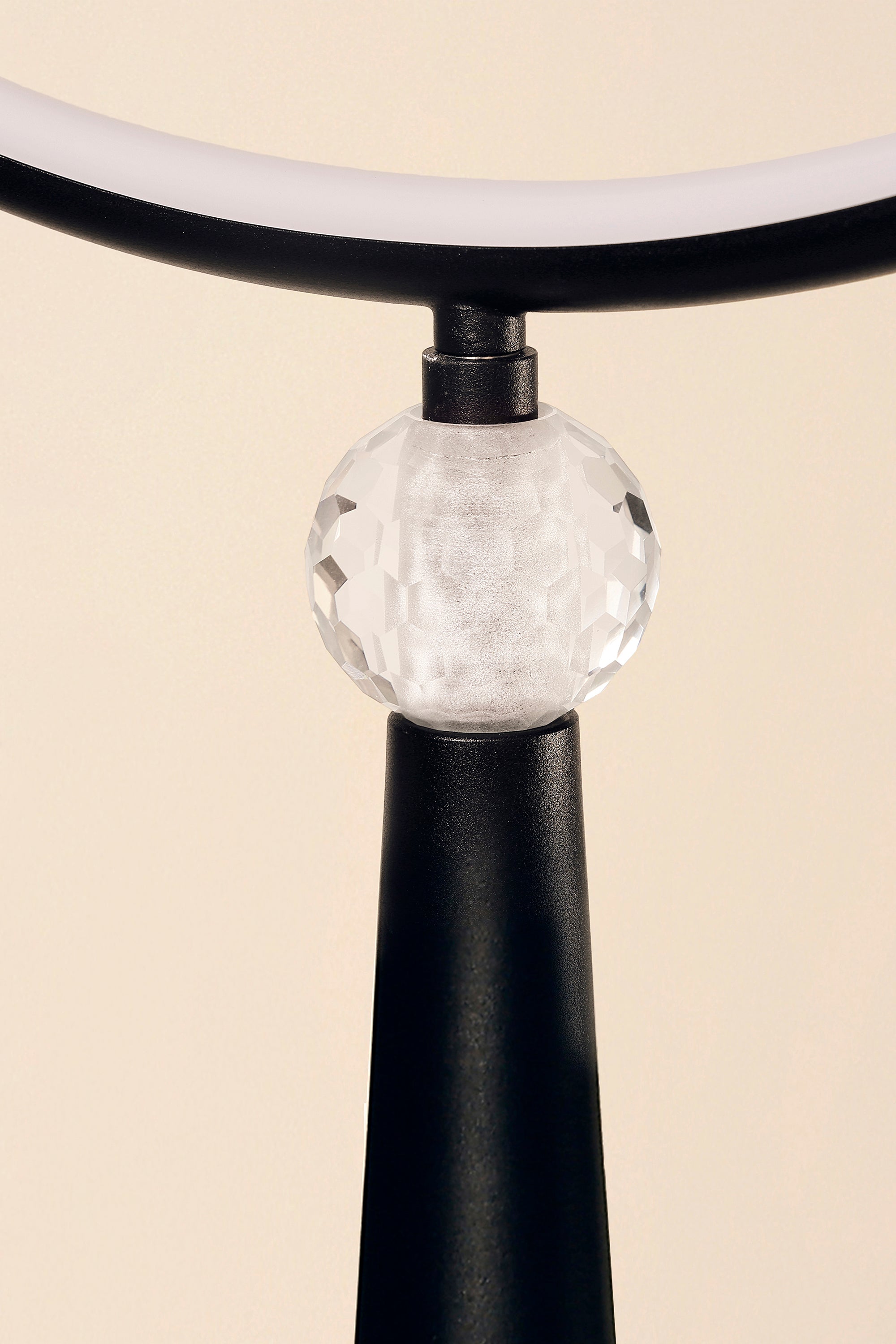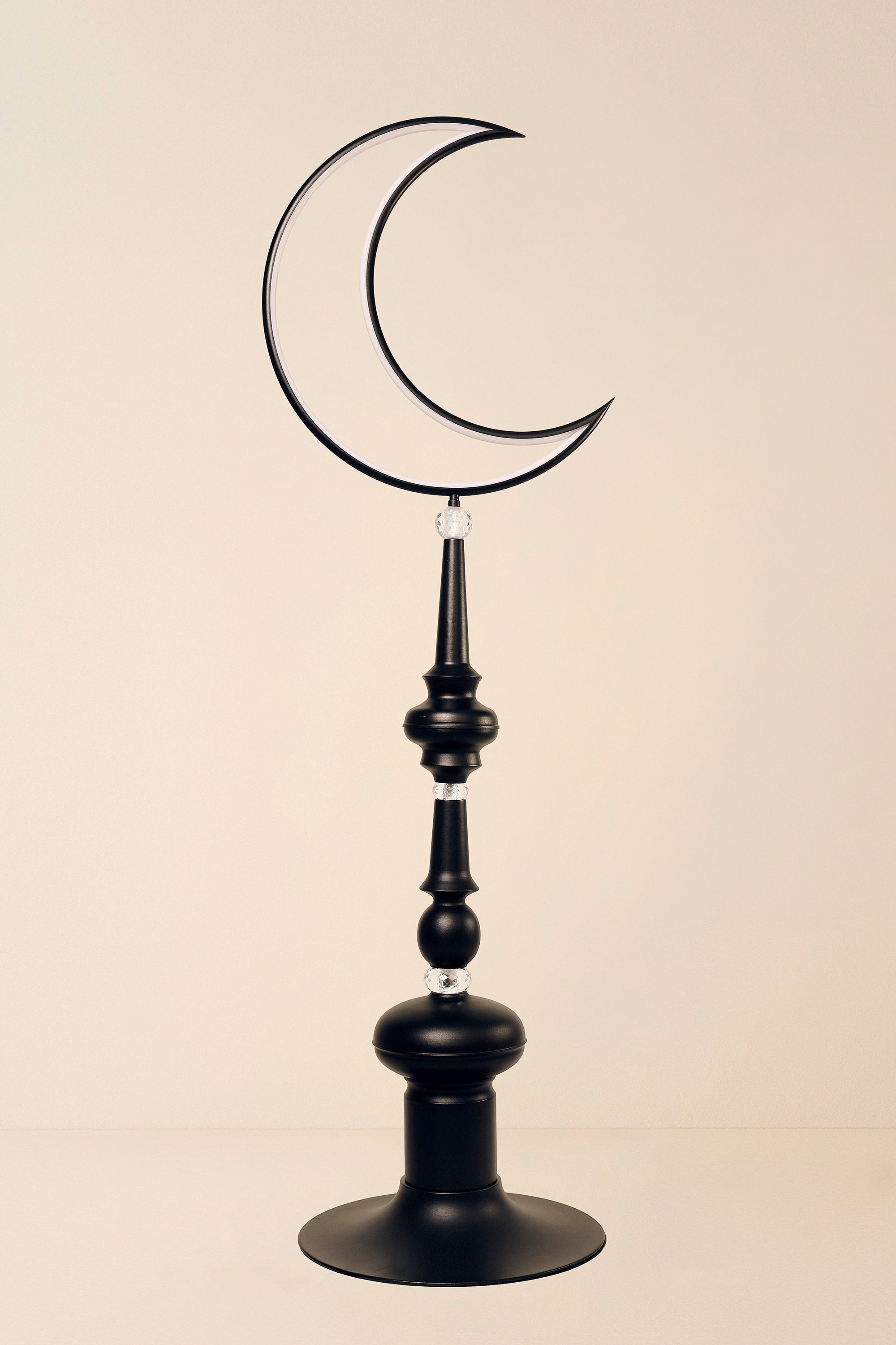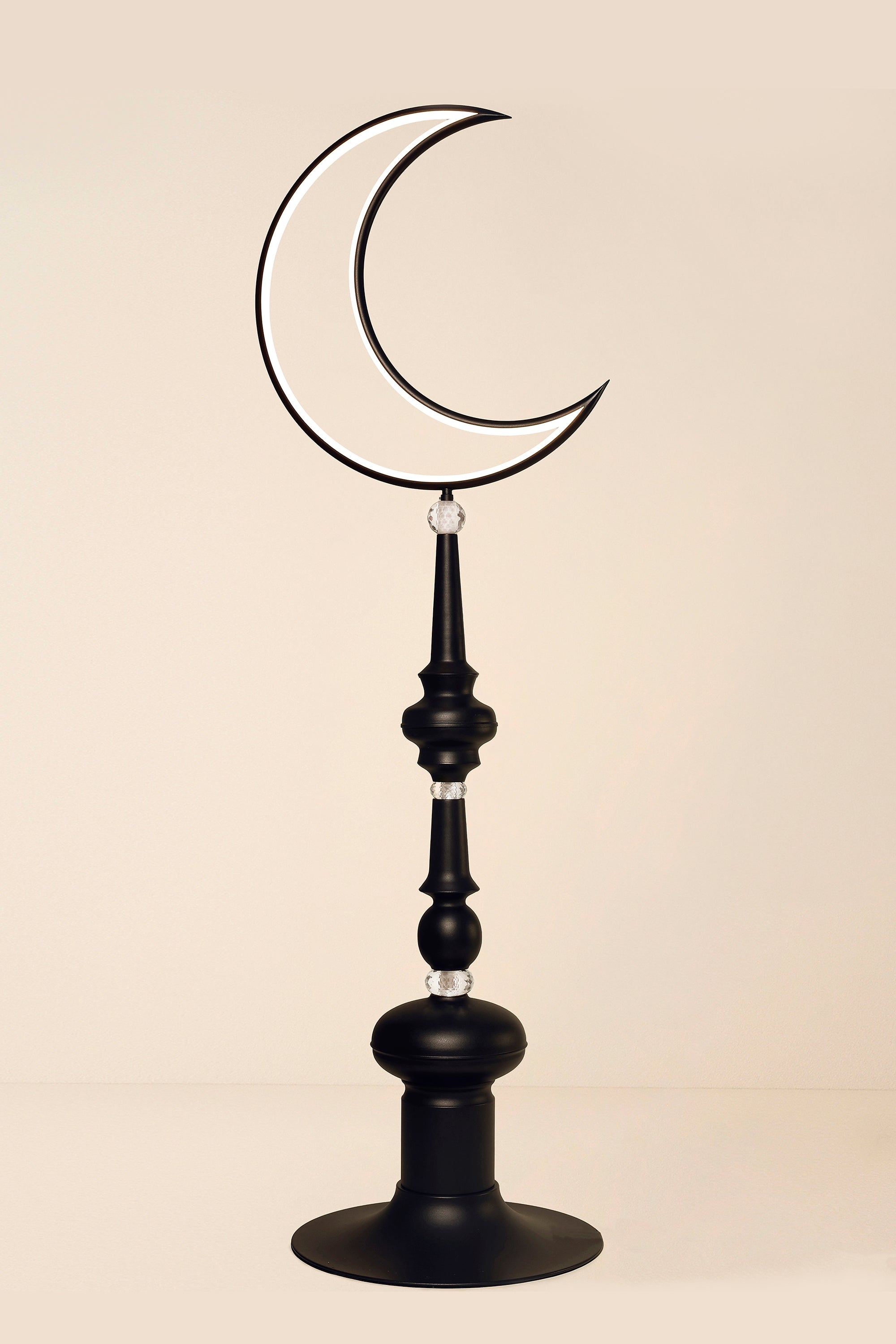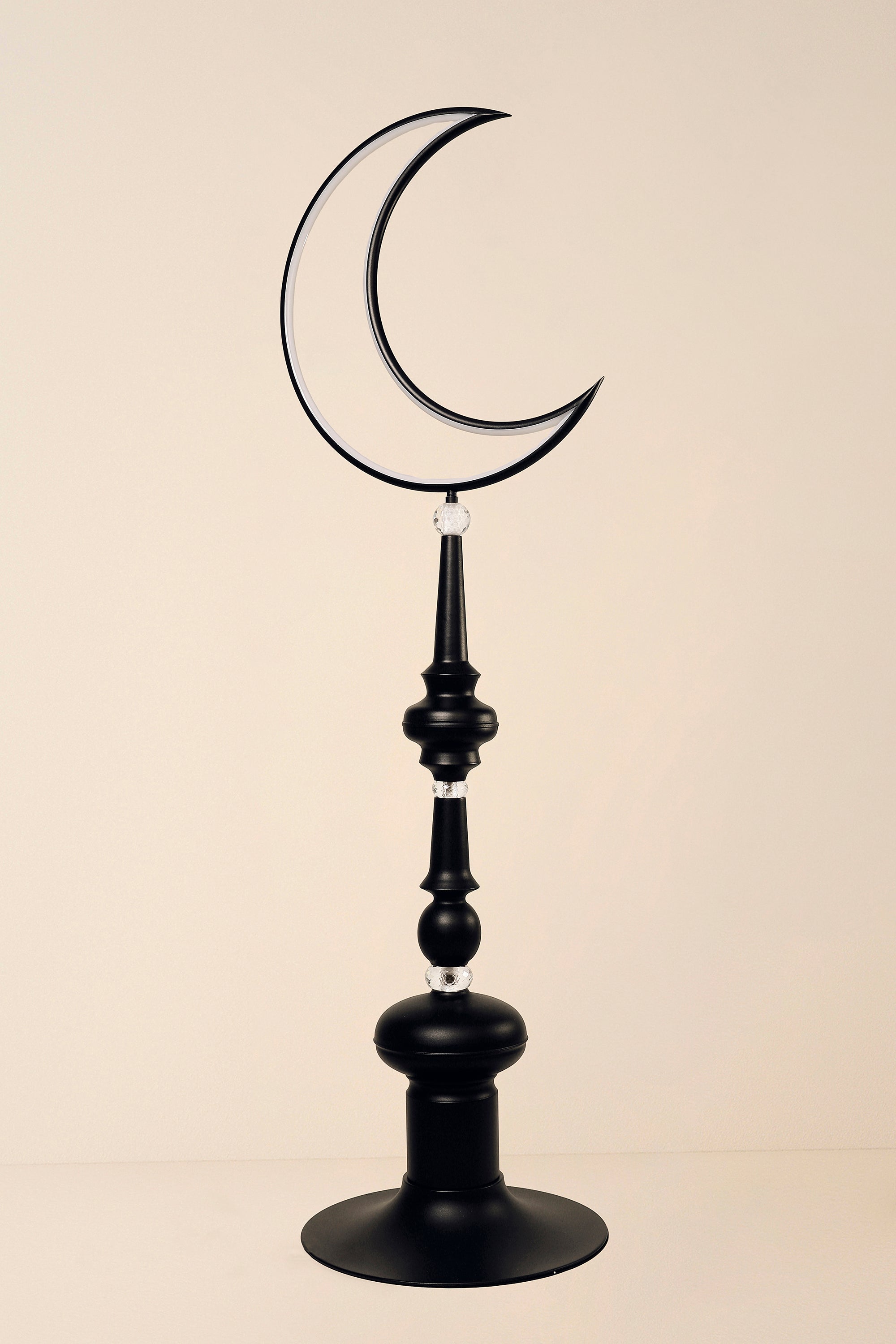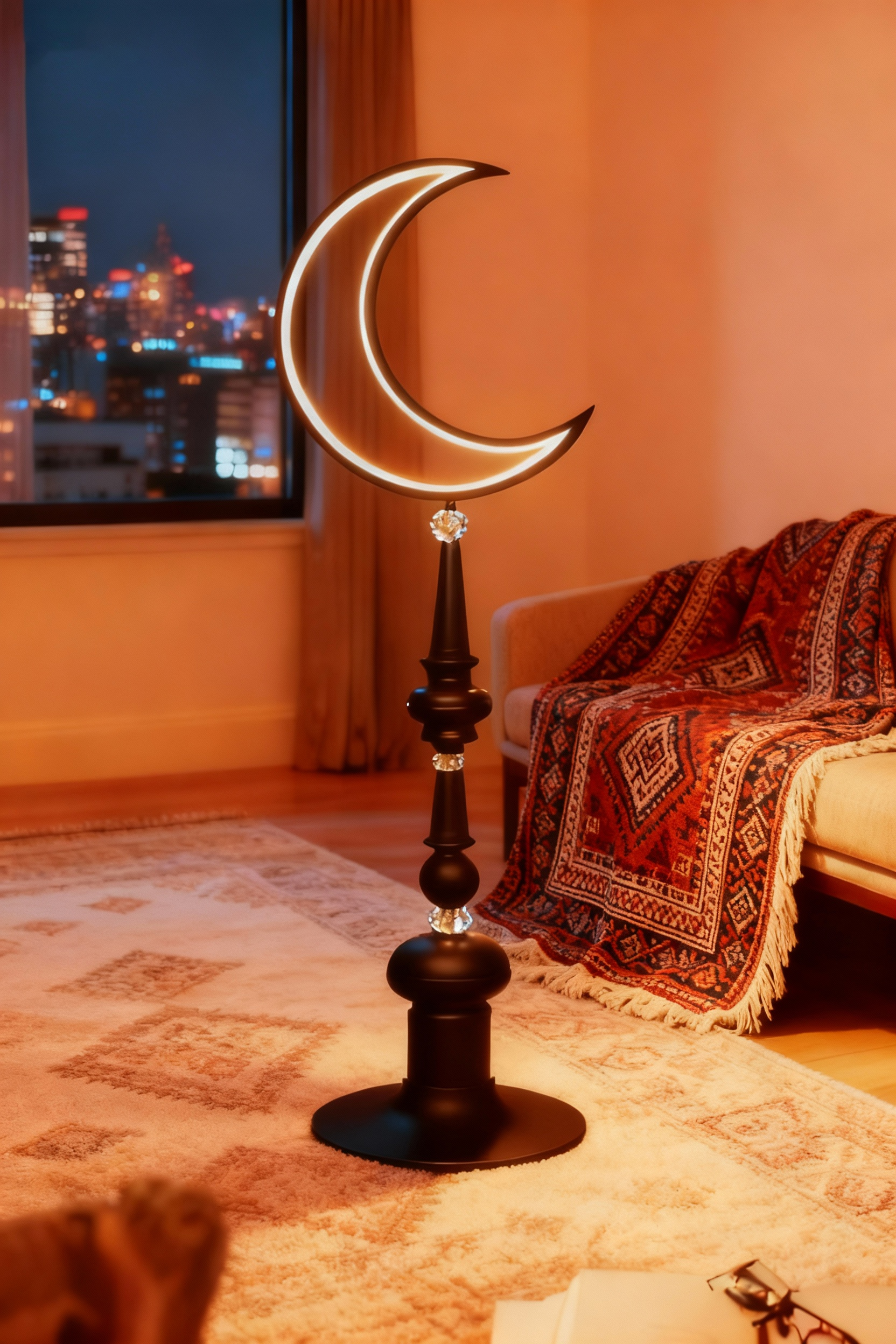 Bring sleek sophistication to your space with the Floor Hilal Lamp. Featuring a minimalist crescent design crafted from aluminum and iron, with subtle crystal accents, this lamp blends modern style with understated luxury. Its clean lines and contemporary silhouette create a calm, elegant atmosphere, while the soft, ambient light enhances any living room, bedroom, or office. Perfect for those who appreciate refined, modern décor without excess.