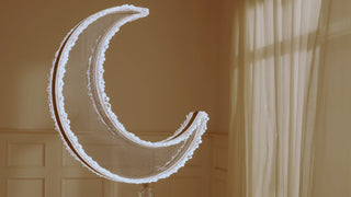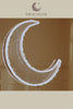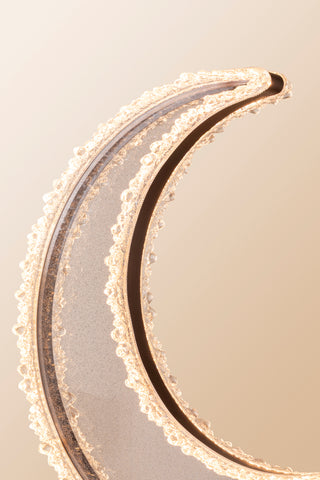 The crescent features textured acrylic with subtle crystal accents, softly diffusing light to create a gentle, luminous glow.