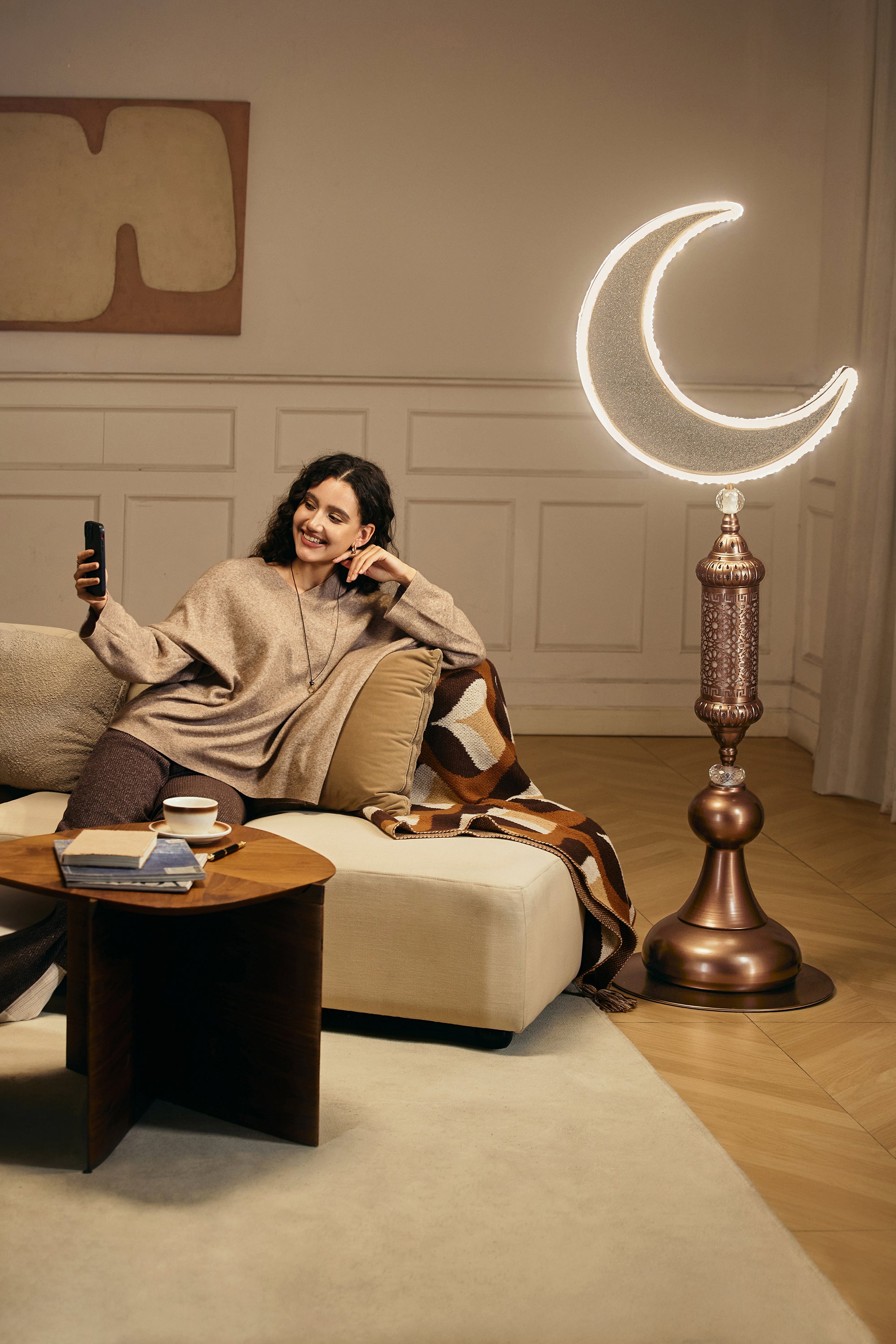 A deep coffee-bronze metallic tone gives the lamp a refined, inviting presence that complements both modern and classic interiors.