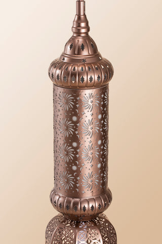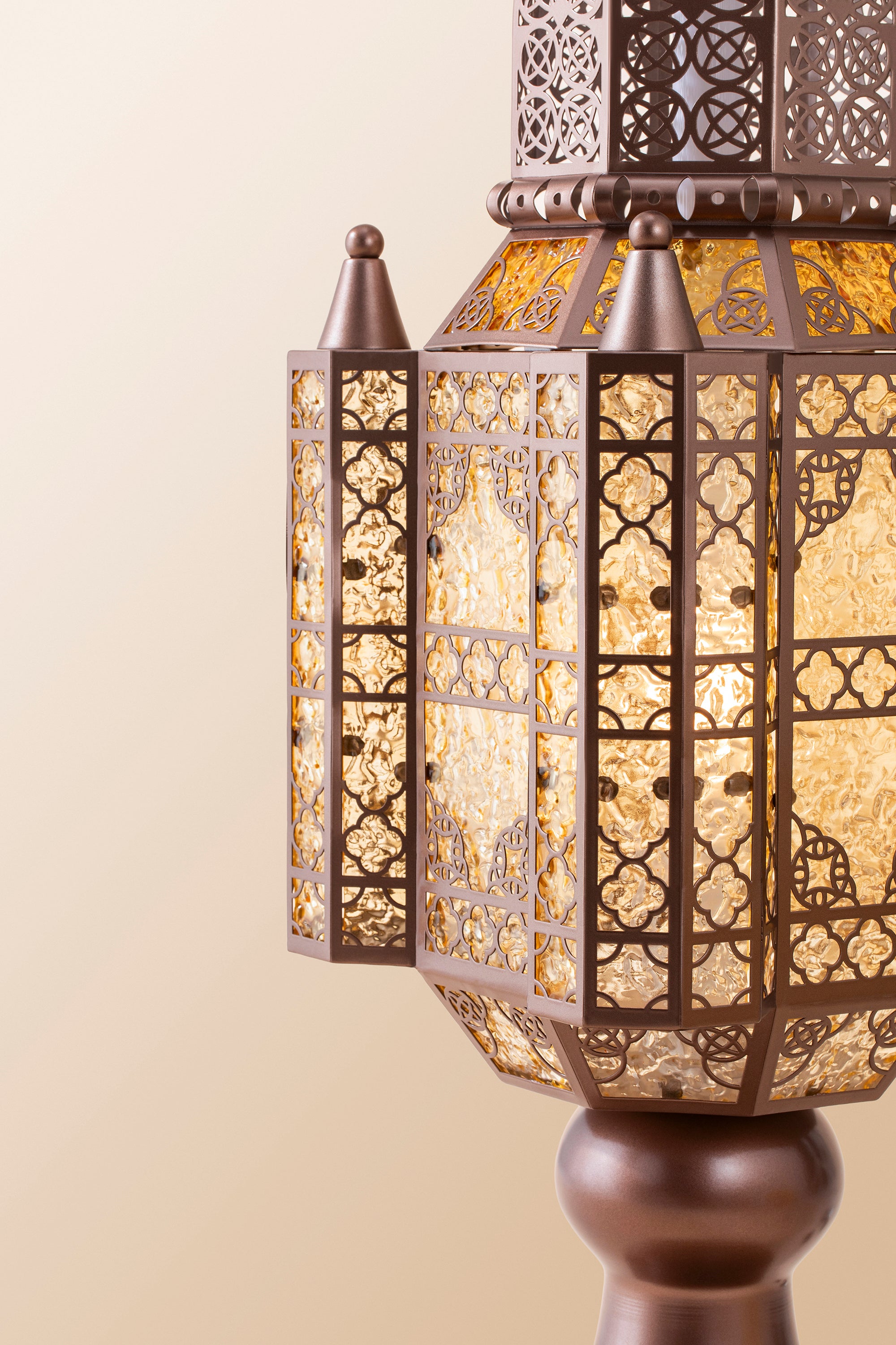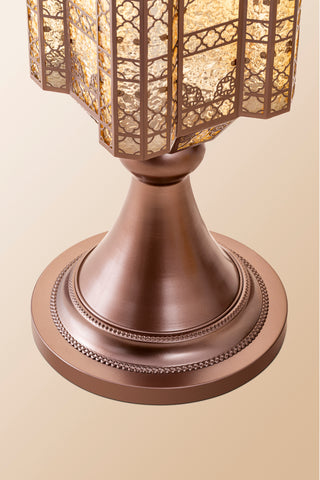 A classic lantern-style base with patterned detailing softly diffuses light, creating a welcoming glow that reflects cultural heritage and craftsmanship.