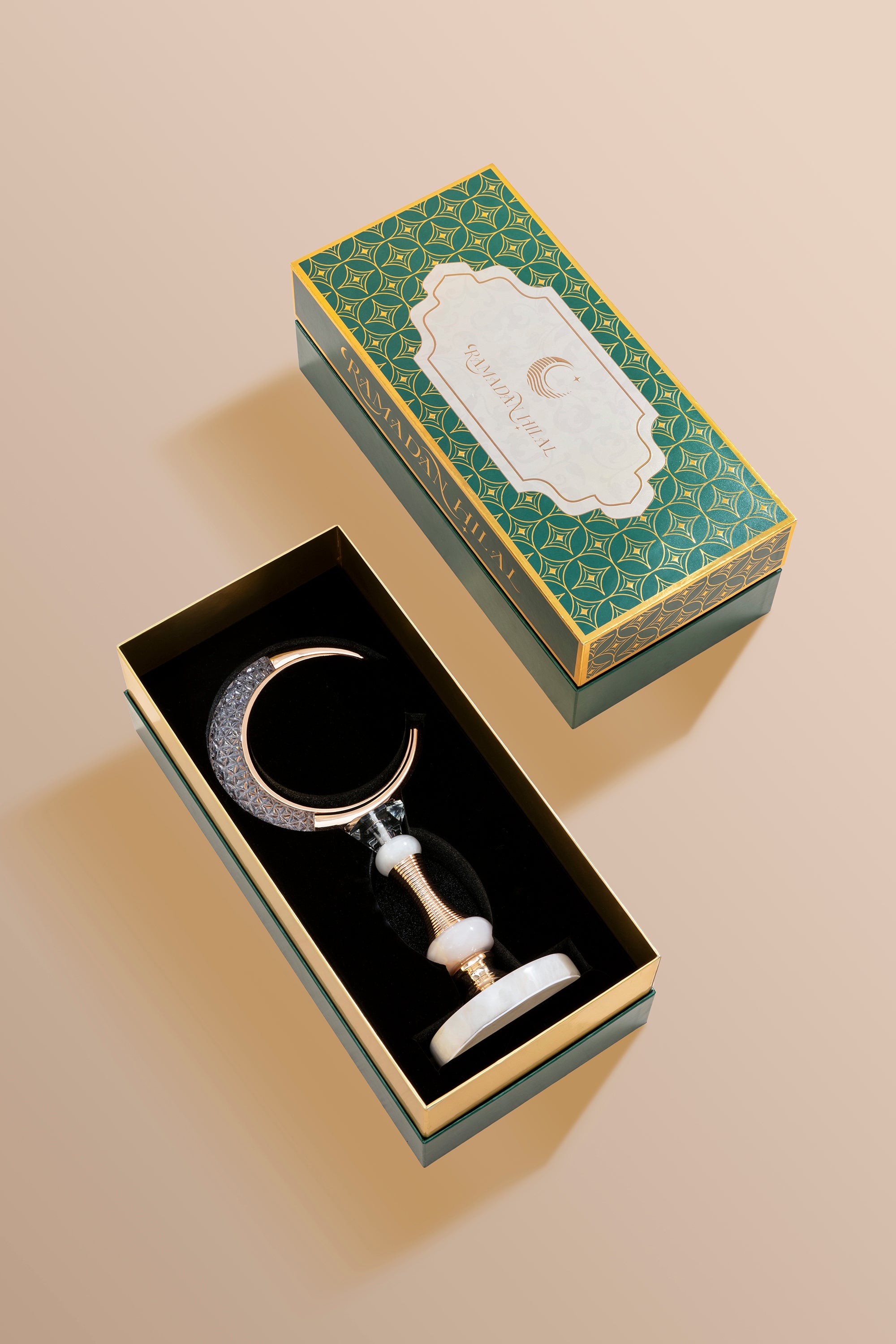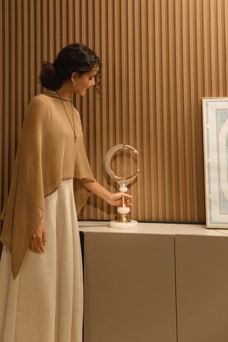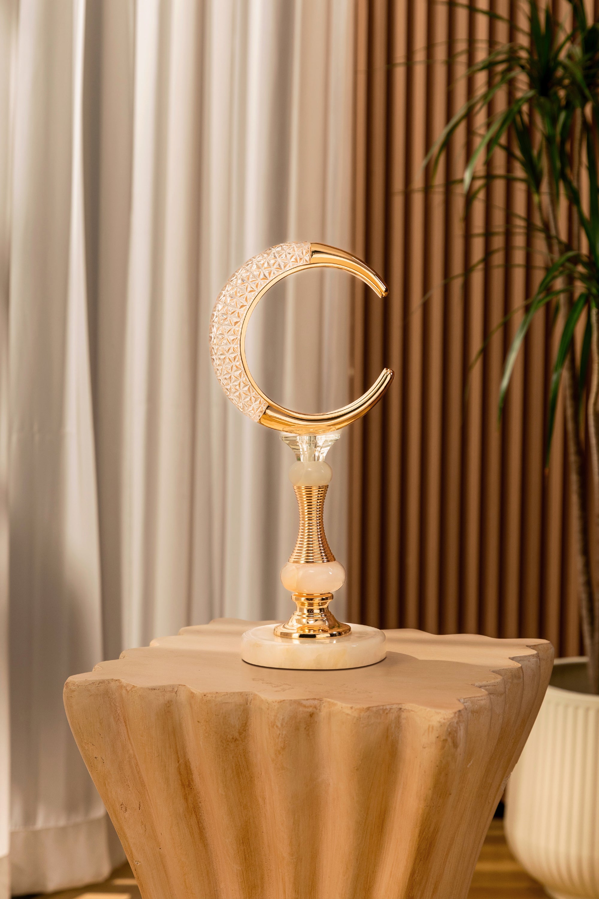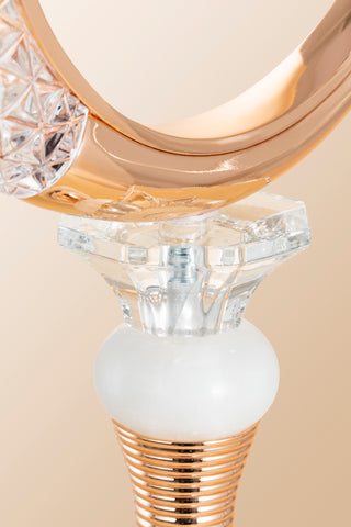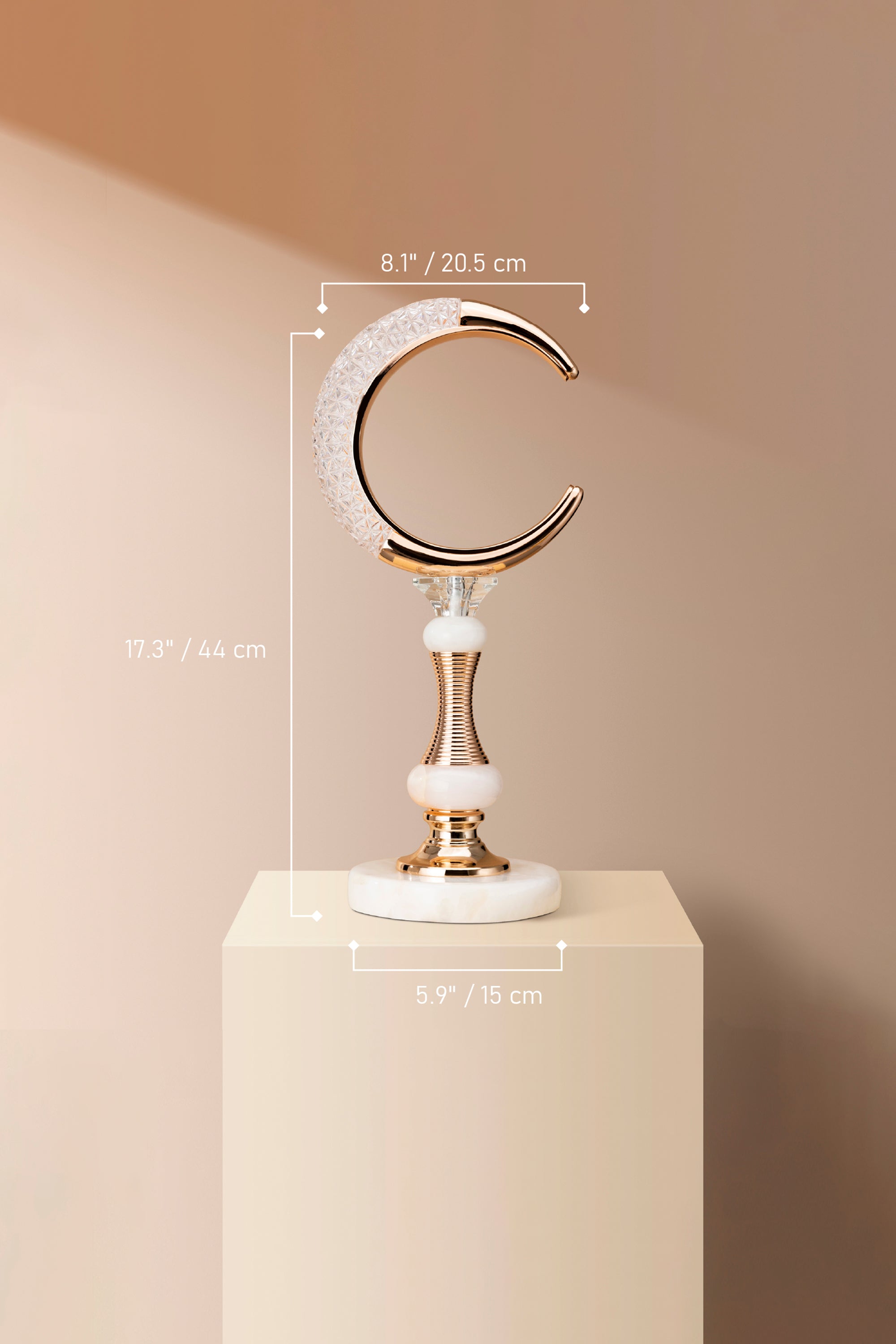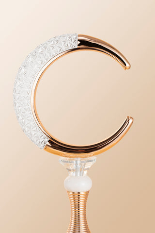 The Rosé Crescent Marble Ornament embodies refined elegance through its sculpted crescent form, warm rose-gold finish, and solid marble base. Designed as a decorative statement rather than a light, it blends crystal clarity with architectural balance, creating a timeless centerpiece for sophisticated interiors. Perfect for tabletops, consoles, or display shelves, this piece expresses quiet luxury and symbolic beauty in its purest form.