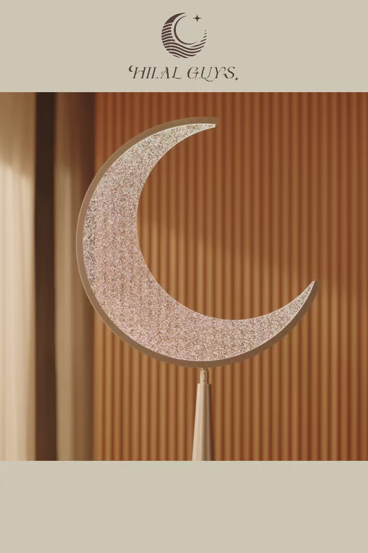A sleek, pearl-finished base ensures balance and visual harmony while complementing the crescent’s gentle color.